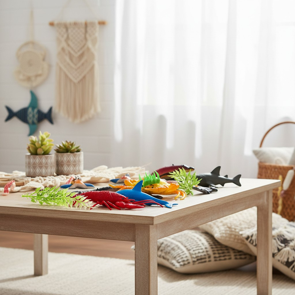Învățare prin explorare tactilă: Seturile tematice de animale oceanice ajută copiii să identifice speciile și să înțeleagă importanța conservării mărilor într-un mod interactiv și distractiv.