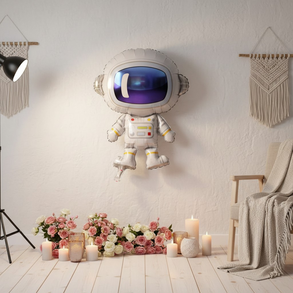 Indiferent că este vorba despre o aniversare, o petrecere tematică NASA sau o celebrare școlară, balonul figurină astronaut aduce un plus de realism și entuziasm. Viziera sa cu reflexii purpurii și panoul de control simulat de pe piept transformă această decorațiune într-o piesă de rezistență, perfectă pentru a fi punctul focal al oricărei fotografii.