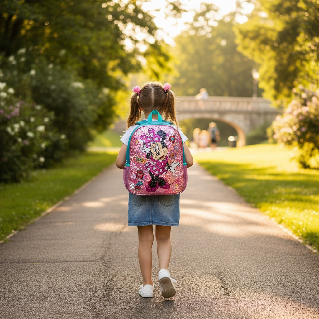 Ghiozdan de grădiniță cu paiete reversibile model Minnie Mouse - 32 x 26 x 9 cm