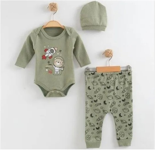 Pregătește-l pe micul tău explorator pentru o misiune specială de joacă și descoperiri! Compleul „Little Astronaut” este alegerea perfectă pentru băiețeii cu vârsta între 6 și 12 luni care sunt gata să „exploreze” fiecare colț al casei. Nuanța de verde vibrant aduce un plus de energie, în timp ce imprimeul cu astronaut îi conferă micuțului un look modern și plin de personalitate, transformând fiecare zi într-o aventură intergalactică.