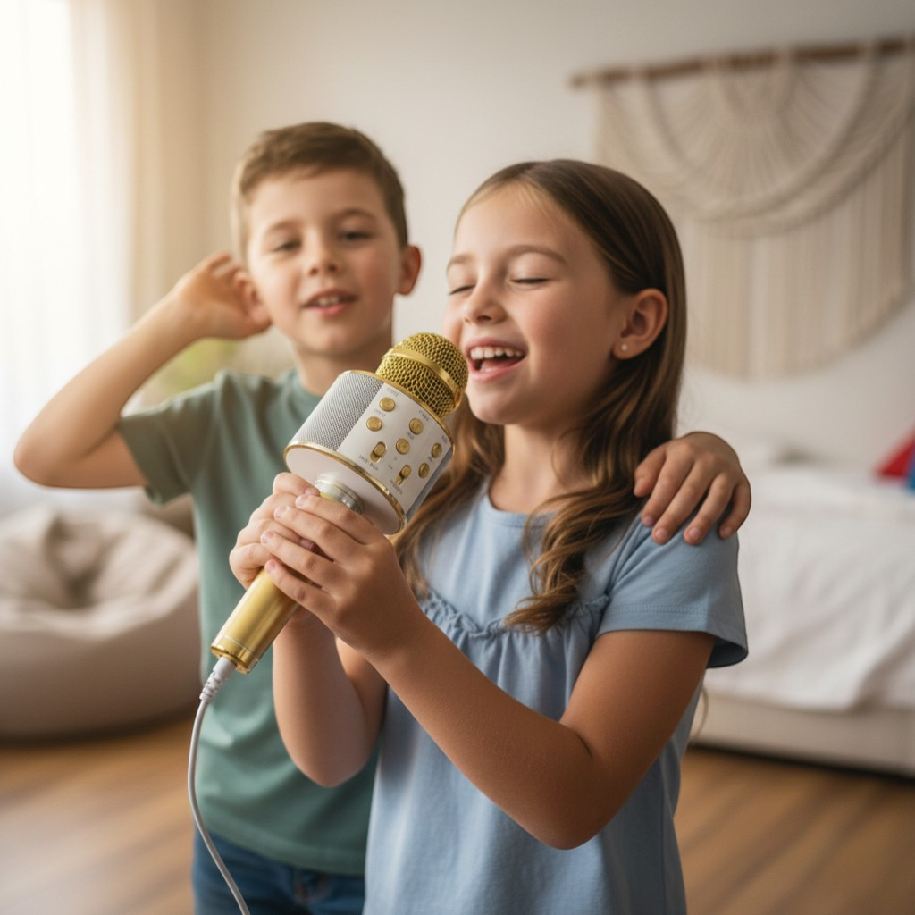 Disponibil într-o paletă variată de nuanțe metalizate (Auriu, Roz, Negru, Argintiu), acest microfon nu este doar un gadget, ci și un accesoriu de stil. Dincolo de funcția de karaoke, el poate fi utilizat ca o boxă Bluetooth portabilă pentru a asculta muzică sau ca receptor Radio FM. Încărcarea se face simplu prin cablul USB inclus, fiind gata de acțiune în orice moment. Este cadoul ideal pentru copiii care vor să își descopere talentul muzical sau pentru adulții care vor să „spargă gheața” la orice petrecere cu un moment spontan de divertisment.