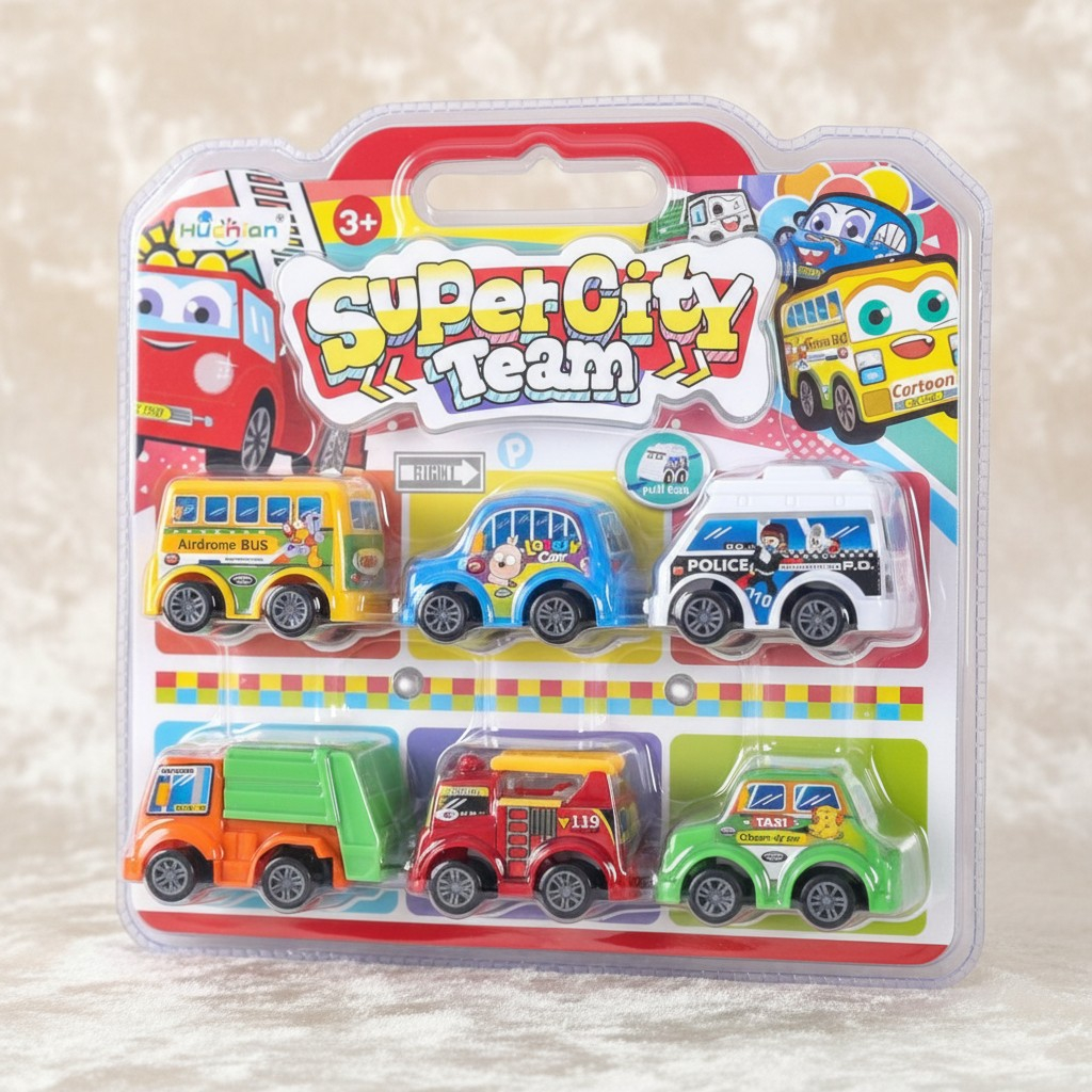 Set 6 Mașinuțe Huemian "Super City Team" - Vehicule Utilitare cu Pull-Back