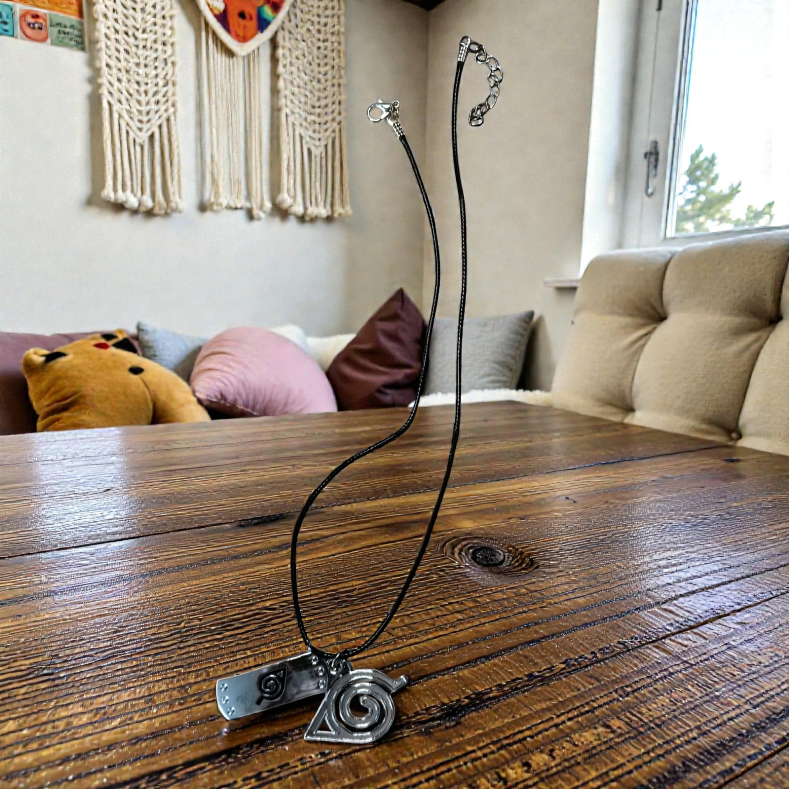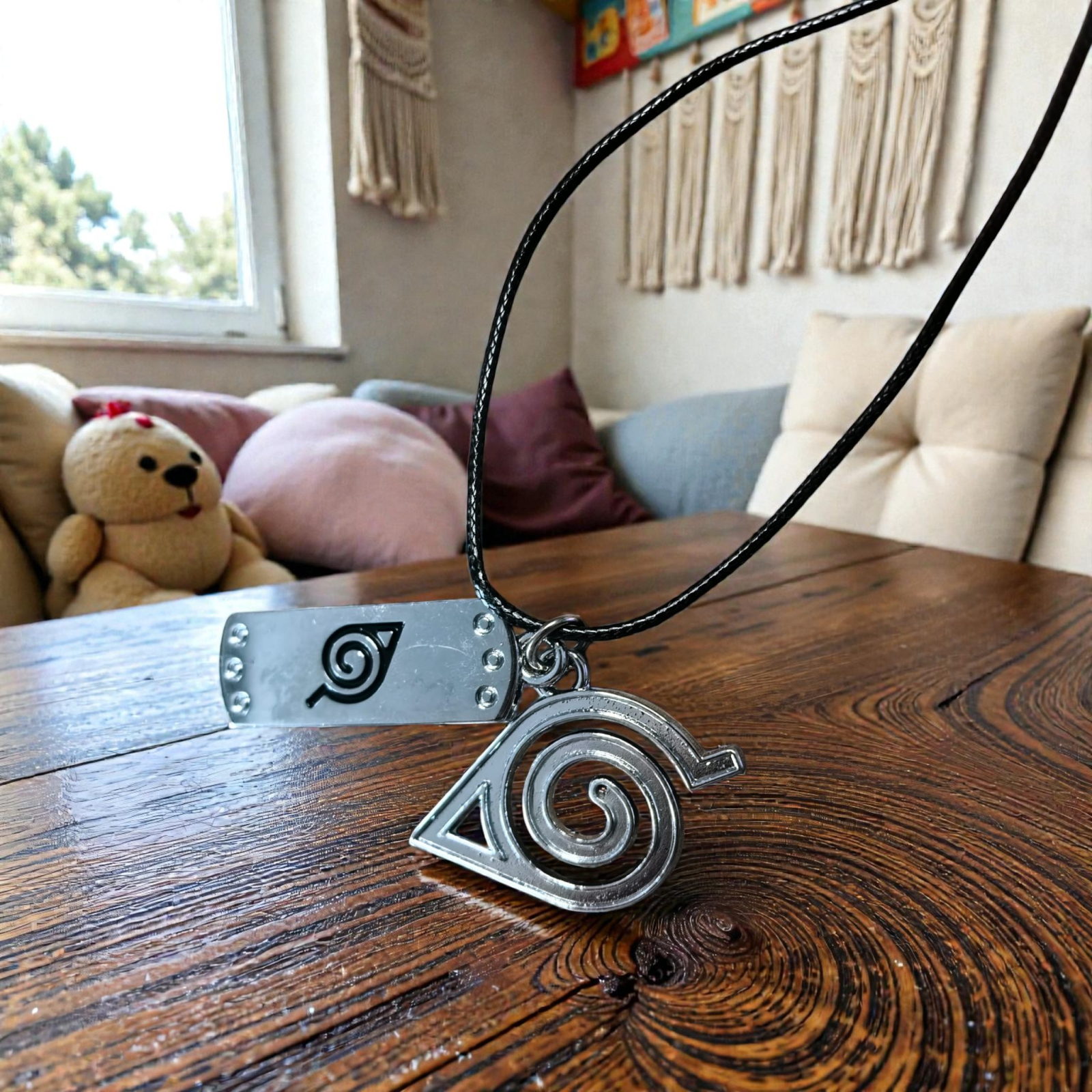 • Design dublu: Include două pandantive emblematice: o plăcuță Konoha și simbolul stilizat al Satului Ascuns între Frunze.