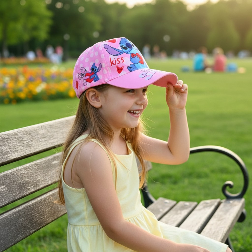 Vara aceasta, Stitch părăsește Hawaii pentru a-i însoți pe micii exploratori în toate misiunile lor estivale! Șapca din colecția „Kiss, Love, Stitch” a fost creată special pentru a combina protecția solară cu dorința copiilor de a purta accesorii cu personajele lor favorite. Designul multicolor captează spiritul jucăuș și ușor rebel al lui Stitch, transformând șapca într-un element central al oricărei ținute casual de vară. Este piesa care aduce un strop de magie și multă energie, indiferent de destinația aleasă.