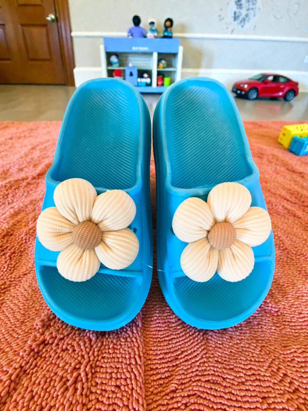 Adaugă un strop de magie și culoare fiecărei plimbări cu papuceii cu floricică 3D