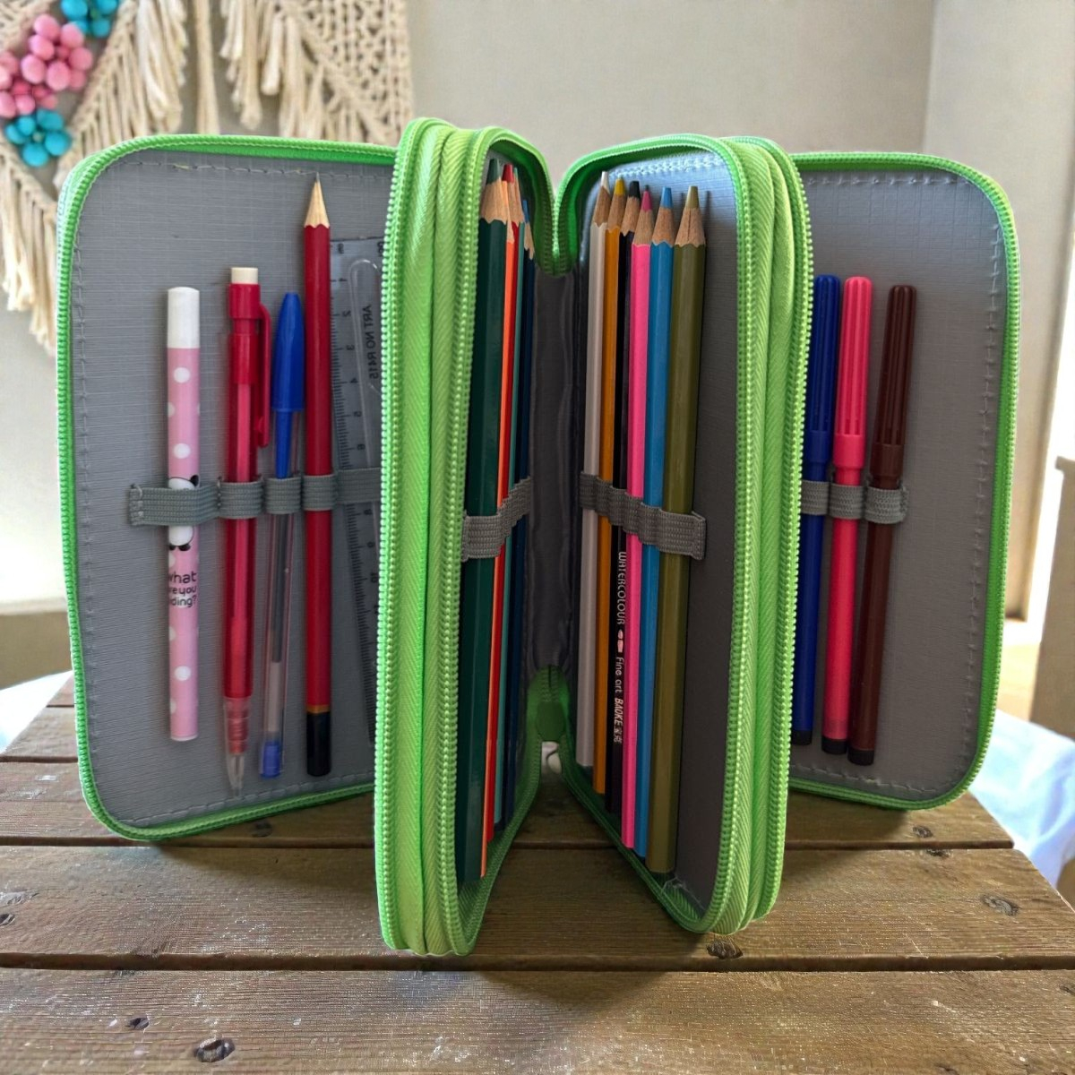 • Organizare Triplă: 3 compartimente spațioase, fiecare cu fermoar propriu, pentru o separare clară a instrumentelor de scris de cele de desen.