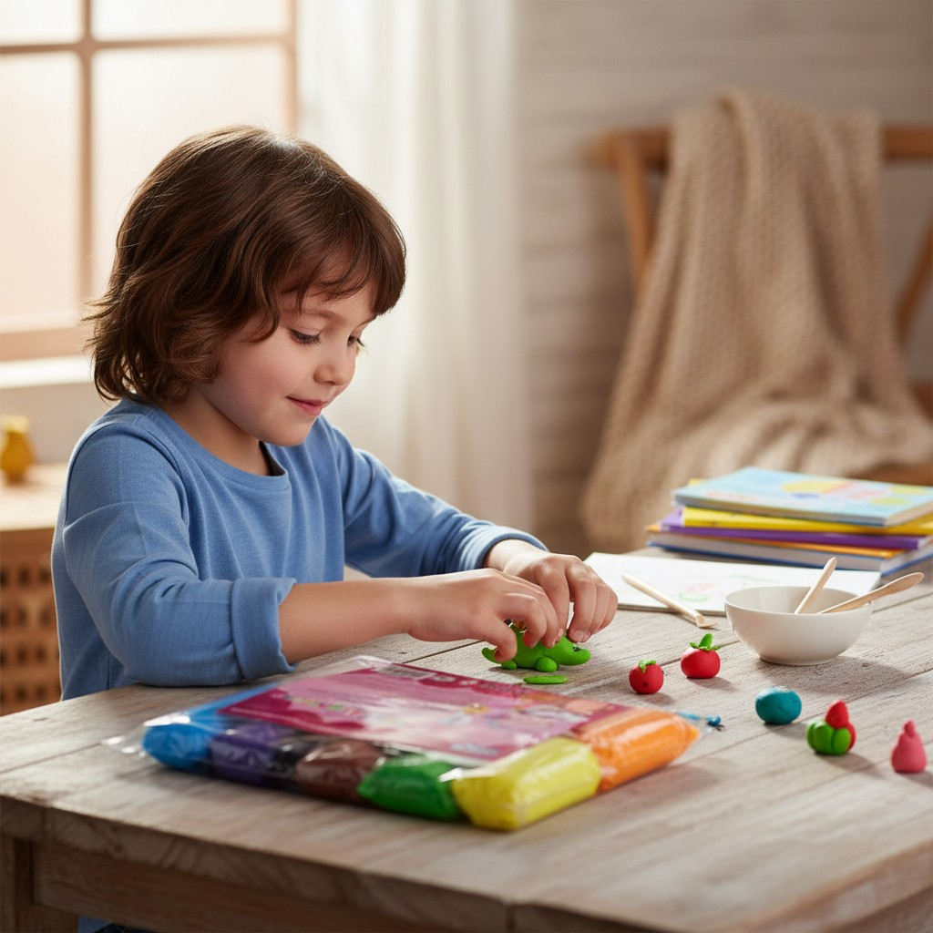 Plastilină tip air-dry care permite întărirea formelor la aer, transformând creațiile în jucării permanente.