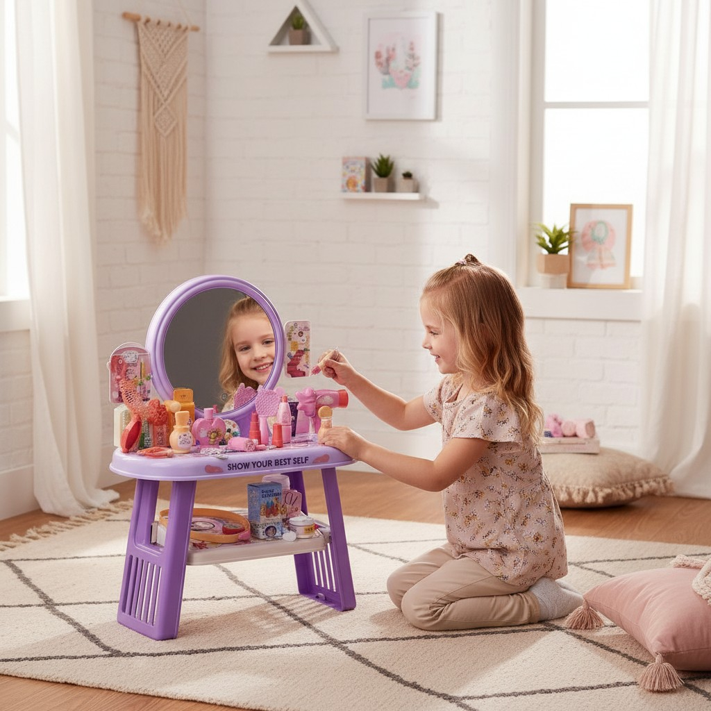 Orice fetiță visează la propriul colț de înfrumusețare unde să își poată explora creativitatea. Măsuța de machiaj „Pretty Girl” este cadoul ideal pentru a stimula imaginația și jocurile de rol, oferind o experiență de „salon” autentică chiar în confortul casei.
