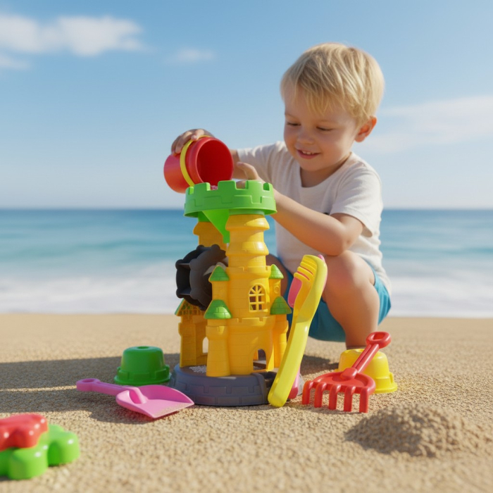 Creativitate fără limite: O varietate de forme pentru nisip (animale marine, vehicule, castele) care permit realizarea unor detalii spectaculoase, transformând orice nisipieră într-o expoziție de artă.